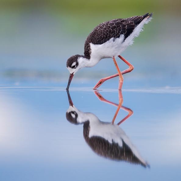 Black-necked Stilts use open, shallow water to nest and forage on aquatic invertebrates.
